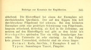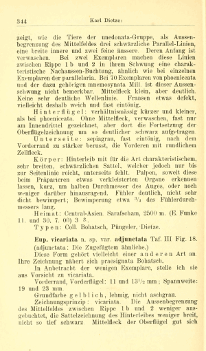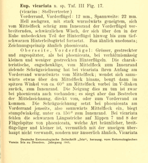 - Erstbeschreibung: Dietze, K. (1904): Beiträge zur Kenntnis der Eupithecien. — Deutsche Entomologische Zeitschrift Iris 16 (2): 331-387, pl. III-V.