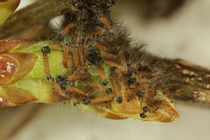- [Fagaceae:] Quercus robur (Stiel-Eiche) [Zumindest in Westeuropa und dem westlichen Mitteleuropa, wahrscheinlich in ganz Mitteleuropa, quantitativ am meisten genutzte Raupennahrungspflanze]