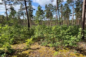 - [Fagaceae:] Quercus rubra (Rot-Eiche) [Die Rot-Eiche wird in der Literatur und im Internet immer wieder als Nahrungspflanze der Art genannt; der Verfasser dieser Zeilen kennt aber diverse Vorkommen, in denen besetzte Stiel-Eichen neben unbesetzten Rot-Eichen stehen, so dass der Rot-Eiche allenfalls eine ganz untergeordnete Bedeutung als Raupennahrung zukommen dürfte]