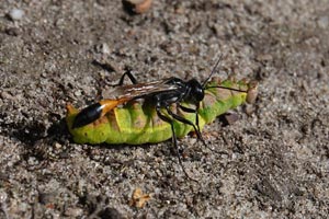 1: Gemeine Sandwespe (Ammophila sabulosa): Deutschland, Nordrhein-Westfalen, Hamminkeln, Sandiger Weg zwischen Wald und Moor, 25 m, 22. August 2024, Tagfund (Foto: Bernhard Stoeckhert)Forum