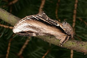 1: Vergleich Pheosia tremula (links) und Pheosia gnoma (rechts): Deutschland, Niedersachsen, Landkreis Lüneburg, Einemhof, 24 m, große, magere Brachfläche inmitten eines alten Eichenmischwald, 5. August 2016, am Licht (Foto: Frank Stühmer)