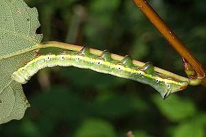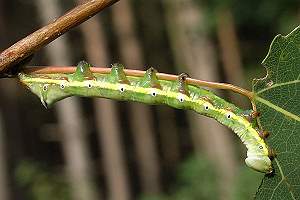 1-2: Jungraupe, Deutschland, Sachsen, Lindenhayn bei Bad Düben, lichter Waldweg mit Espengebüsch, auf Espe (Populus tremula), 6. September 2006 (det. & Studiofotos am 7. September 2006: Heidrun Melzer)Forum