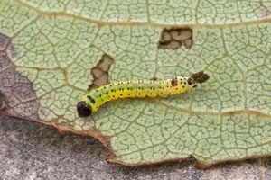 1: an einem lichten Waldweg in Fichten-Mischwald wurde eine Raupe (L3) von einem jungen Espenbäumchen (Populus tremula) geklopft: Deutschland, Baden-Württemberg, Schönau Haidflüh, 750 m, 12. September 2010 (Foto: Florian Nantscheff)Forum