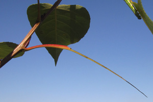 1-2: die ausgewachsene Raupe lässt nur die Blattmittelrippe stehen, Deutschland, Niedersachsen, Region Hannover, Barsinghausen, Ortsteil Bantorf, 80 m, an Populus trichocarpa, 1. Oktober 2017 (det. & Freilandfotos: Tina Schulz)