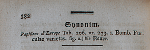 - Erstbeschreibung: Borkhausen, M. B. (1790): Naturgeschichte der Europäischen Schmetterlinge nach systematischer Ordnung. Dritter Theil, der Phalänen erste Horde, die Spinner: [I-X], 1-476. Frankfurt (Varrentrap und Wenner).