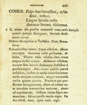 - Cossus verbasci Fabricius, 1798 [Originalkombination]