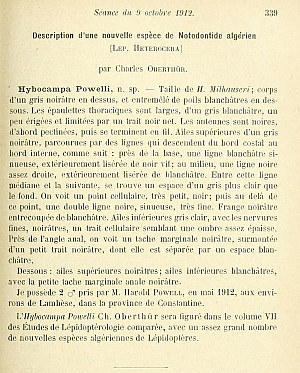 - Hybocampa powelli Oberthür, 1912 [Originalkombination]