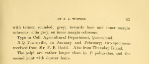 - Original description: Turner, A. J. (1903): Revision of Australian Lepidoptera. — The Proceedings of the Linnean Society of New South Wales 28 (1): 42-92. Sydney (F. Cunninghame & Co.).