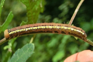 1-2: Indonesien, Bali, Denpasar, 70 m, Raupe 23. Februar 2019 auf Urena lobata, e.l. 11. März 2019 (fot.: Kersten Krause), det. Roland BreithauptForum
