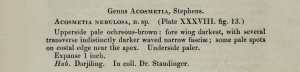 - Acosmetia nebulosa Moore, 1881 [Original combination]