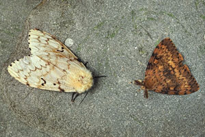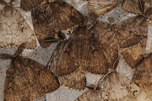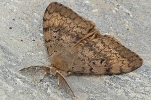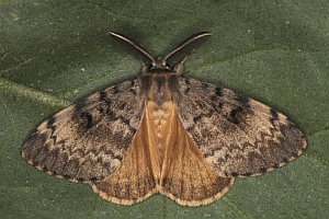15: beide Geschlechter im Vergleich: Deutschland, Niedersachsen, Amt Neuhaus, bei Laave, moornaher Kiefern-Heidelbeerwald, 31. Juli 2019, ♂ am Licht, ♀: Nachtfund an Kieferrinde (Foto: Frank Stühmer)Forum
