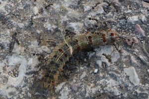 1: Raupe als Opfer von Ameisen, Griechenland, Korfu, Angelokastor, ca. 270 m, 31. Mai 2013 (det. & fot.: Peter Ginzinger)Forum