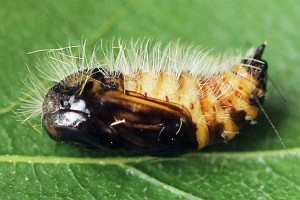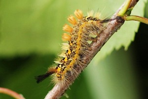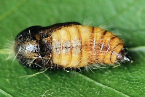 1: Jungraupen vor Überwinterung, Russland, Oblast Moskau, Bezirk Orechowo-Sujewo, Dorf Topolinyy, 118 m, Torfmoor, auf junger Birke (Betula pendula), 17. August 2013 (det. & Foto: Andrey Ponomarev)