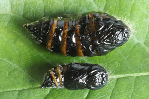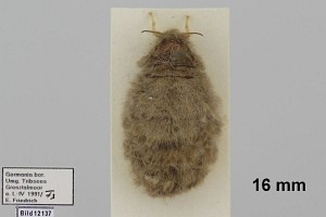 1: weibliche Puppe im Kokon, Rumänien, Siebenbürgen, Sighisoara, 15 km südlich der Stadt bei Apold, ca. 600 m, Raupe am 1. Mai 2010 gefunden (leg., cult., det. & Foto am 12. Mai 2010: Kuno Martini)Forum