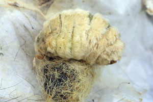 3-4: zwei Verpuppungskokons, Russland, Oblast Moskau, Bezirk Orechowo-Sujewo, Dorf Topolinyy, 118 m, Torfmoor, Raupenfund 18. Mai 2013 (leg., cult., det. & Fotos am 26. Mai und 4. Juni 2013: Andrey Ponomarev)