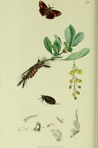 - Curtis, J. (1823-1840): British Entomology; Being Illustrations and Descriptions of the Genera of Insects Found in Great Britain and Ireland: Containing Coloured Figures from Nature of the Most Rare and Beautiful Species, and in Many Instances of the Plants upon which they are Found. Vol V. Lepidoptera, Part I. — [Not paginated]. London (E. Ellis & Co.).