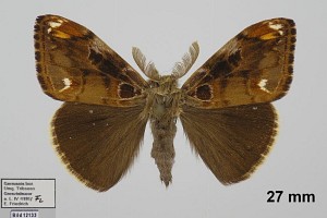 2: ♀ (Ventralansicht), Rumänien, Siebenbürgen, Sighisoara, 15 km südlich der Stadt bei Apold, ca. 600 m, Raupe am 1. Mai 2010 gefunden, e.l. 20. Mai 2010 (leg., cult., det. & Foto: Kuno Martini)Forum