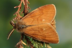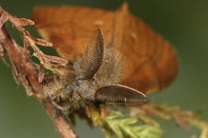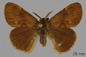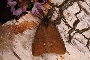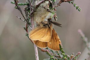4: ♀ vor der Eiablage, Körper mit langen, fellartigen Schuppen, die später die Eier bedecken, Deutschland, Niedersachsen, Tinner Dose, Moorgebiet mit Glockenheide, leg. Raupe 16. Juli 2014, Foto 6. August 2014 (Studiofoto: Carsten Heinecke)Forum