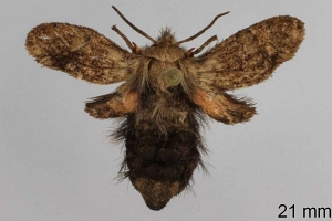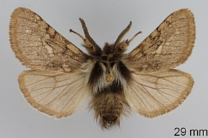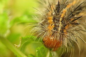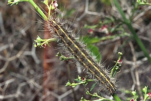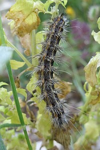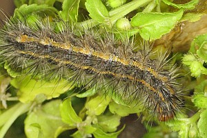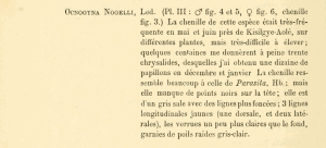 Nach Fritsch et al. (2014) sehen die Raupen deutlich anders aus als jene von O. parasita; ihre Behaarung ist nicht gelb, sondern immer weißlich.