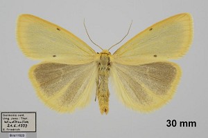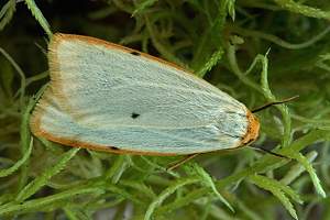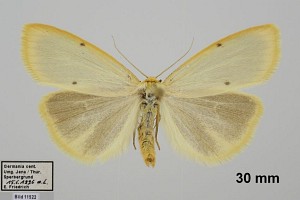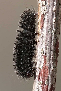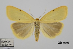 1: 10 mm: Deutschland, Niedersachsen, Landkreis Schaumburg, Rodenberg, 90 m, Garten, leg. ♀ 17. Juni 2021 am Licht (UV-Röhre + EntoLEDmini), Eiablage, Raupenschlupf 27. Juni 2021, Zuchtfoto 16. September 2021 (Zucht im Haus mit Baumflechten) (cult., det. & fot.: Tina Schulz)