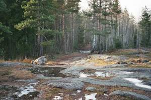 2: Habitat zur Raupenfundzeit, Finnland, Turku-Varissuo, Nadelwald, 11. April 2008 (Foto: Franziska Bauer)