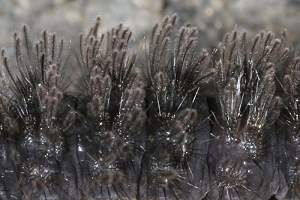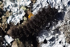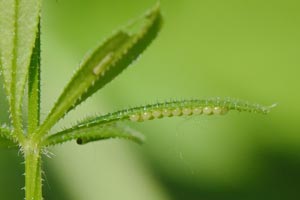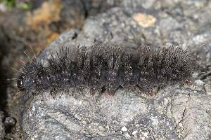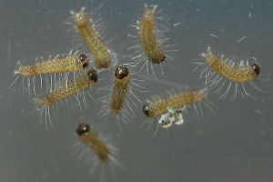 5-6: Eiraupen (L1): Deutschland, Niedersachsen, Landkreis Schaumburg, Rodenberg, 90 m, Garten, leg. ♀ 17. Juni 2021 am Licht (UV-Röhre + EntoLEDmini), Eiablage, Raupenschlupf 27. Juni 2021 (Zucht im Haus mit Baumflechten) (cult., det. & fot.: Tina Schulz)