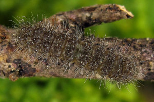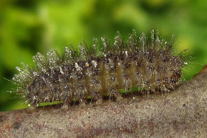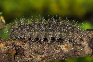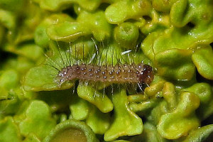 2-4: halbwüchsig, 7-8 mm: Deutschland, Niedersachsen, Landkreis Schaumburg, Rodenberg, 90 m, Garten, leg. ♀ 17. Juni 2021 am Licht (UV-Röhre + EntoLEDmini), Eiablage, Raupenschlupf 27. Juni 2021, Zuchtfotos. 9. August 2021 (Zucht im Haus mit Baumflechten) (cult., det. & fot.: Tina Schulz)