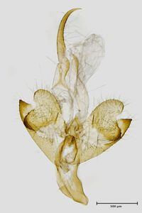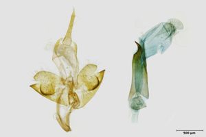 1-4: Deutschland, Thüringen, Herbsleben, Unstrut-Hainich-Kreis, Feuchtgebiet Herbslebener Teiche, 160 m, 51.130°N, 10.869°E, 29. Juni 2024, am Licht, leg. E. Anton (prep., gen.det. & Foto: Hartmuth Strutzberg) Der Genitalapparat wurde schwimmend in situ in verschiedenen Positionen aufgenommen. Folgende Reihenfolge: ventral (erstes Foto), lateral rechts, dorsal, lateral links (letztes Foto) Falter im ForumForum