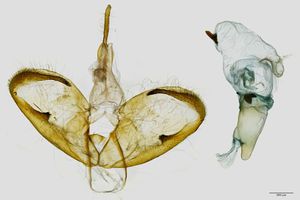 Dubatolov & Zolotuhin (2011) stellen die rhetorisch gemeinte Frage: “Does Eilema Hübner, [1819] (Lepidoptera, Arctiidae, Lithosiinae) present one or several genera?” Sie studierten die Genitalien aller ihnen zugänglicher Arten und kommen zum Schluss: “Amongst all cited generic groups, the most remarkable is Eilema Hb., s.str. with almost reduced saccular and costal processes; valva became ovoid without any processes (Fig. 9). It is very strange that in many modern guides [de Freina, Witt, 1987; Leraut, 2006; Ylla et al., 2010] male genitalia of the Eilema type species were figured incorrectly showing a clear saccular process factually absent. There is at least one more autapomorphic character for Eilema Hb.: presence of triangular harpe on the inner surface of valva near its base. Strongly enlarged uncus with narrowly extended tip is probably also autapomorphic for Eilema Hb., however enlarged uncus without such tip sometimes occurs in other species like boreal atratula Eversmann, 1847 group of species. Taking into account such strong differences between caniolum Hb. and other species, it is necessary to separate it from Eilema Hb. in a monotypic genus.”