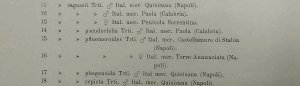 1-14: Turati (1917: 218, 226-227, pl. III figs. 11-18, pl. V figs. 4 + 11a-f, pl. VI fig. 2, pl. VII fig. 8) [Reproduktion aus Band in der Universitätsbibliothek Frankfurt am Main: Jürgen Rodeland]