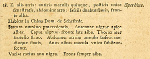 - Erstbeschreibung: Fabricius, J. C. (1787): Mantissa insectorum sistens eorum species nuper detectas adiectis synonymis, observationibus, descriptionibus, emendationibus. Tom. II. Hafniae (Christ. Gottl. Proft): 1-382.
