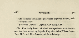 - Original description: Mac Leay, W. S. [1826]: Annulosa. Catalogue of Insects, collected by Captain King, R.N. — In: King, P. P. (“1827”) [1826]: Narrative of a survey of the intertropical and western coasts of Australia performed between the years 1818 and 1822 2: 438-469. London (John Murray).