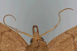 Bei ♂♂ ist das noch einfacher. Dann muss man sich nämlich nur die Fühler ansehen: Herminia tarsipennalis hat einen Knoten im Fühler, der Herminia tarsicrinalis fehlt. (Stefan Ratering) [Forum]