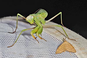 1-2: Gottesanbeterin (Mantis religiosa), Österreich, Steiermark, Hauenstein, aufgelassener Steinbruch, ca. 400 m, 20. August 2022, am Leuchtschirm (Foto: Ingrid Windisch)Forum