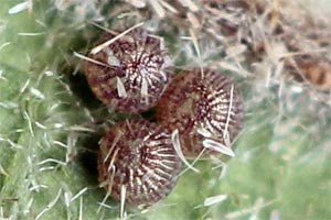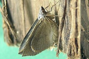 1: aus abgenagten Rindenteilen hergestellter Verpuppungskokon, Deutschland, Sachsen, Dübener Heide, Doberschütz, leg. Raupe 17. Juni 2009, 30. Juni 2009 (Foto: Heidrun Melzer), cult. & det. Heidrun Melzer