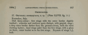 - Erstbeschreibung: Swinhoe, C. (1885): On Lepidoptera collected at Kurrachee. — Proceedings of the scientific meetings of the Zoological Society of London for the Year 1884 (4): 503-529, pl. XLVII-XLVIII.