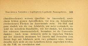 - Erstbeschreibung: Staudinger, O. (1892): Neue Arten und Varietäten von Lepidopteren des paläarktischen Faunengebiets. — Deutsche entomologische Zeitschrift Iris 4 (2): 224-339 + Taf. III-IV.