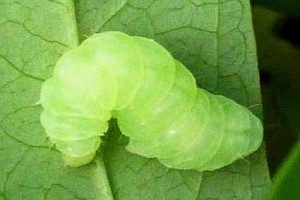 1: Befallsbild (letztes Raupenstadium) an Rittersporn, Deutschland, Schleswig-Holstein, Todenbüttel, 12 m, Garten, 7. Mai 2010 (Freilandfoto: Clas Lehmann)Forum