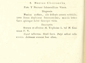 - Erstbeschreibung: Tauscher, A. M. (1809): Sur quelques noctuelles nouvelles de la Russie. — Mémoires de la Société impériale des naturalistes de Moscou 2: 313-326, pl. 20. — Digitalisat von Google Books im Viewer der Hathi Trust Digital Library: [322], [pl. 20]