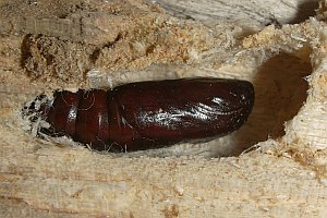 1-5: Deutschland, Sachsen, Dübener Heide, Umgebung von Doberschütz, Kiefernmischwald, Raupenfund am 1. August 2010, verpuppt Mitte August 2010 in morschem Holz (leg., cult., det. & Studiofotos am 21. August 2010: Heidrun Melzer)