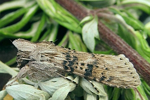 12-13: 28 mm, Deutschland, Niedersachsen, Umgebung Bad Nenndorf, Moorbodenabbau- und aufbereitungsanlage (= Brache mit unterschiedlichen Sukzessionsstadien auf Teilflächen), 70 m, leg. Raupe 27. Juli 2014 an Beifuß (Artemisia vulgaris), 19. August 2014 (cult., det. & Fotos: Tina Schulz)Forum
