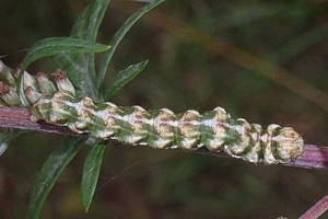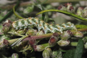 4: L3 (10 mm): Deutschland, Niedersachsen, Umgebung Bad Nenndorf, Moorbodenabbau- und -aufbereitungsanlage (= Brache mit unterschiedlichen Sukzessionsstadien auf Teilflächen), 70 m, leg. Raupe 27.07.2014 an Beifuß (Artemisia vulgaris), 28. Juli 2014 (cult., det. & Fotos: Tina Schulz)Forum