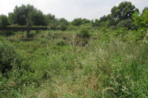 3: Larvalhabitat, Deutschland, Niedersachsen, Umgebung Bad Nenndorf, Moorbodenabbau- und -aufbereitungsanlage (= Brache mit unterschiedlichen Sukzessionsstadien auf Teilflächen) mit Beifuß (Artemisia vulgaris), 70 m, 27. Juli 2014 (Foto: Tina Schulz)Forum