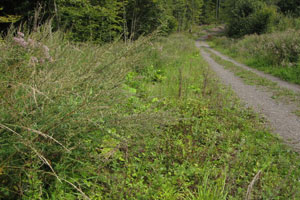 4: Larvalhabitat, Raupen an überhängendem Beifuß (Artemisia vulgaris): Deutschland, Niedersachsen, Umgebung Beckedorf, 150 m, lichter Waldweg im Mischwald, 25. August 2014 (Foto: Tina Schulz)Forum