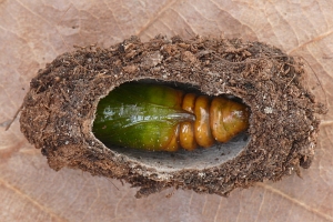 5-6: L4 (15 mm): Deutschland, Niedersachsen, Umgebung Bad Nenndorf, Moorbodenabbau- und -aufbereitungsanlage (= Brache mit unterschiedlichen Sukzessionsstadien auf Teilflächen), 70 m, leg. Raupe 27.07.2014 an Beifuß (Artemisia vulgaris), 30. Juli 2014 (cult., det. & Fotos: Tina Schulz)Forum