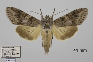 2-4: drei Individuen, Deutschland, Sachsen, Leipzig, sonniger Weg am Ufer des Elsterstaubeckens, Raupen an Beifuß 7./8. August 2006, e.l. 24. Juni 2007, 2. Juli 2007 bzw. 18. Juni 2007 (Studiofotos: Heidrun Melzer), cult. & det. Heidrun MelzerForum