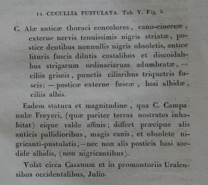 - Erstbeschreibung: Eversmann, E. (1842): Quædam lepidopterorum species novæ, in Rossia orientali observatæ, nunc descriptæ et depictæ. — Bulletin de la Société Impériale des Naturalistes de Moscou 15 (3): 543-564, pl. V-VI.