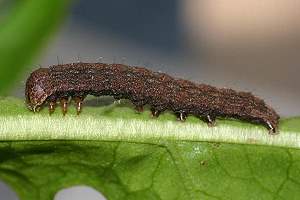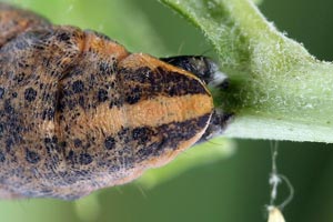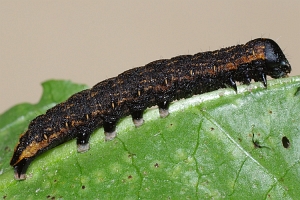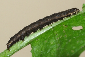 10: Russland, Oblast Moskau, Bezirk Serebrjanyje Prudy, Dorf Lischnyagi, Raupe auf Picris hieracioides am 9. August 2018, Foto 15. Dezember 2018 (leg., cult., det. & fot.: Andrey Ponomarev)Forum