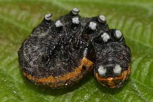3-4: Russland, Oblast Moskau, Bezirk Serebrjanyje Prudy, Dorf Lischnyagi, Raupe auf Picris hieracioides am 9. August 2018, Faltercshlupf 23. März 2019 (leg., cult., det. & fot.: Andrey Ponomarev)Forum