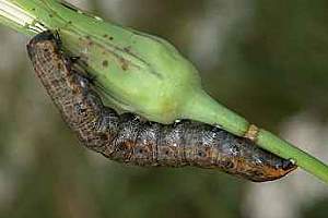 15-16: Russland, Oblast Moskau, Bezirk Serebrjanyje Prudy, Dorf Lischnyagi, Raupe auf Picris hieracioides, 9. August 2018, (leg., cult., det. & fot.: Andrey Ponomarev)Forum